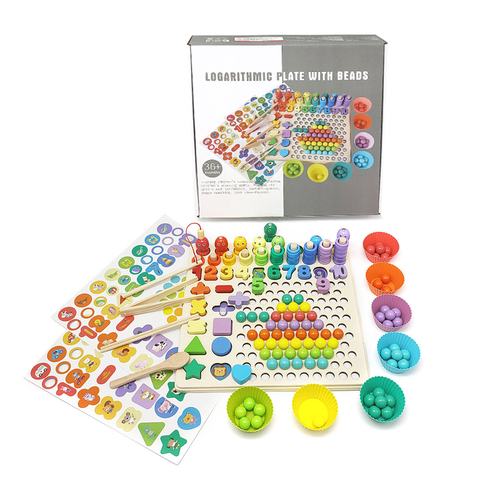 Logarithmic Plate Wood Toys for Kids Montessori with Beads
