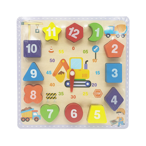 Excavator Pattern Toddler Toys Wooden Clock for Kids