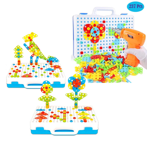 Accept Custom Russian Pack 237pcs Children STEM Gift Electric Drill Diy Take Apart Construction Block Educational Toy Screw