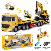 With Light and Music 11channel 2in1 1/12 Scale Engineering Construction Excavator Rc Truck and Trailer Remote Control Toy